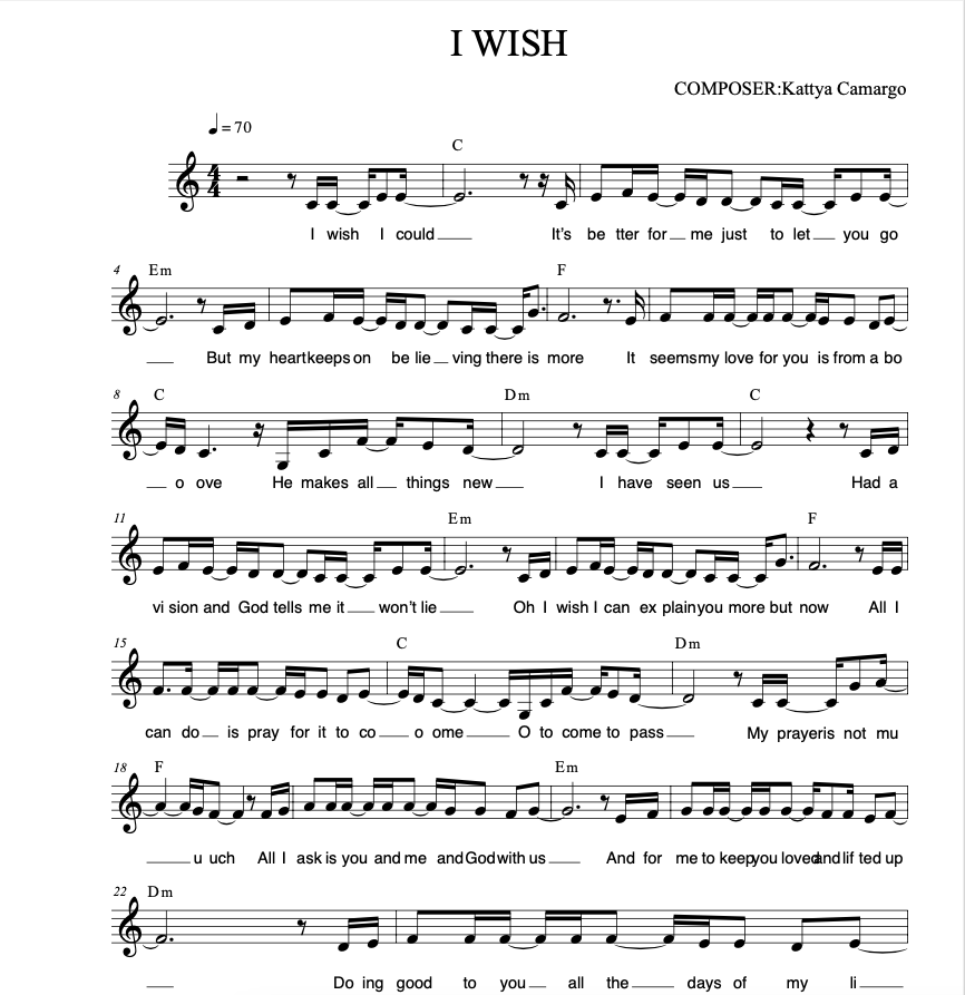 I Wish Voice & Chords - Score$3.79$3.79https://schema.org/InStockusdKatty CamargoKatty CamargoI want this!I Wish - Music SheetSize114 KBLength2 pagesAdd to wishlist New wishlistShare on XShare on Facebook Copy linkCopy product URL