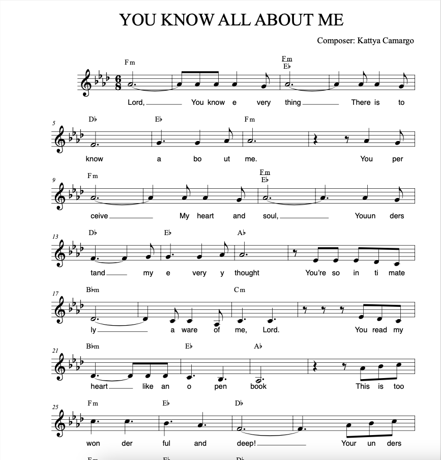 You Know All About Me Voice & Chords - Score$3.79$3.79https://schema.org/InStockusdKatty CamargoKatty CamargoI want this!You Know All About Me - Music SheetSize226 KBLength5 pagesAdd to wishlist New wishlistShare on XShare on Facebook Copy linkCopy product URL